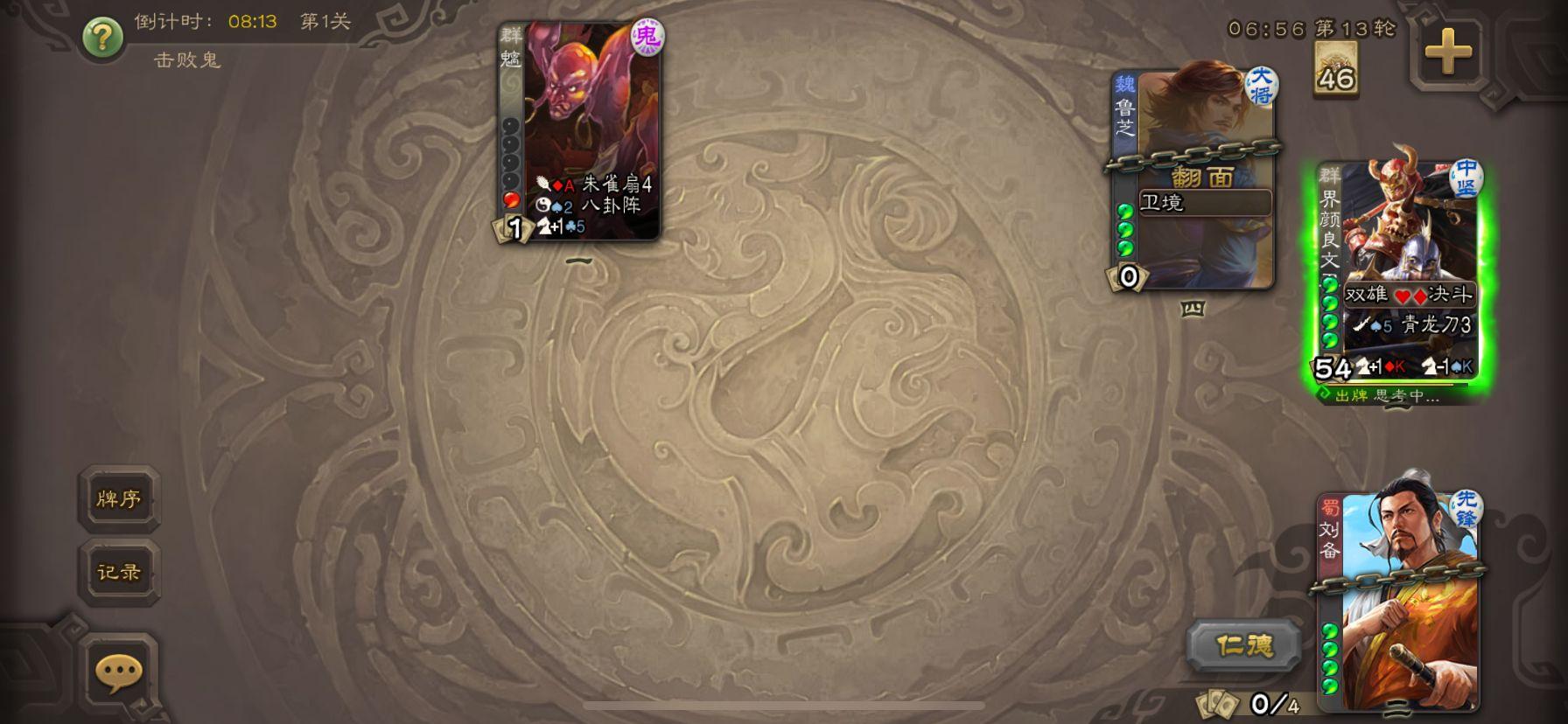 玩这个组合基本上每个位置都爽,刘备鲁芝负责刷牌,双头负责输出就可以了,大家各司其职负责自己的部分就完事了,刘备仁德所有牌给鲁芝,鲁芝清忠退回刘备,两人循环反复刷就可以了,这个组合唯一需要担心的就是乐不思蜀,只要攒无懈解乐就行了,不然全部从头开始攒,别问我怎么知道的。