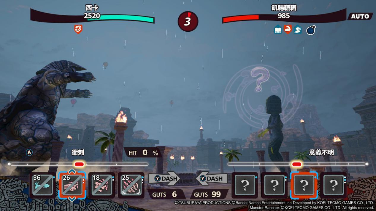 好在,除此之外,《超人怪兽农场》并没有对系列原有的战斗系统做出太多修改。在手动操作模式下,玩家需要通过手柄上的“R”“L”按键控制我方与对手间的距离,并以命中率、技能效果和发动时机为参照,对敌方发起攻击。游戏里的四个距离,分别对应着怪兽在培养过程中,学会的四个不同类型技能。配合效果各异的怪兽技能,以及可以快速改变距离的“冲刺”“推开”动作,让每场战斗来得远比看上去要来得有趣和充满变数。而60秒一场的最大时限,更是保证了玩家的游戏节奏不会被强制拖慢。再加上清晰的UI与各个关键数值部分显示,你完全可以将本作中的战斗,看作是《怪物农场》经典系统在当下最好的现代化表现形式。