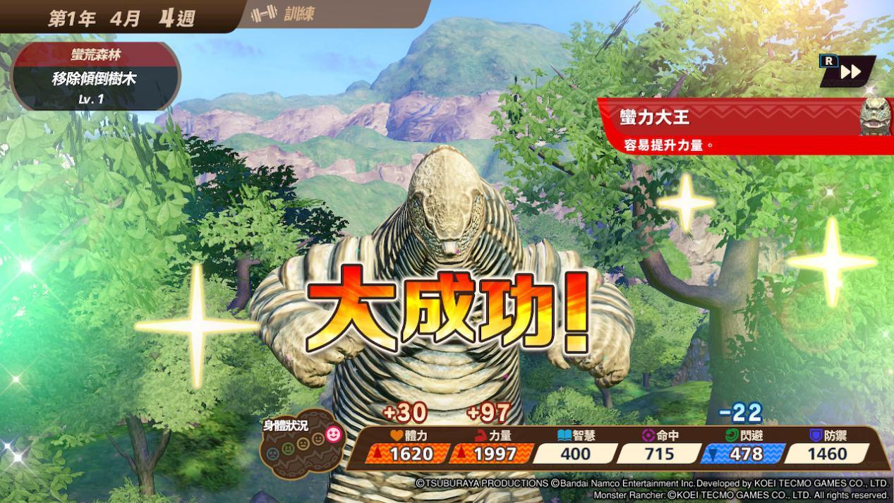 虽然其中也有运气成分,但怪兽的各项身体情况和持有特性,都将影响训练的最终效果