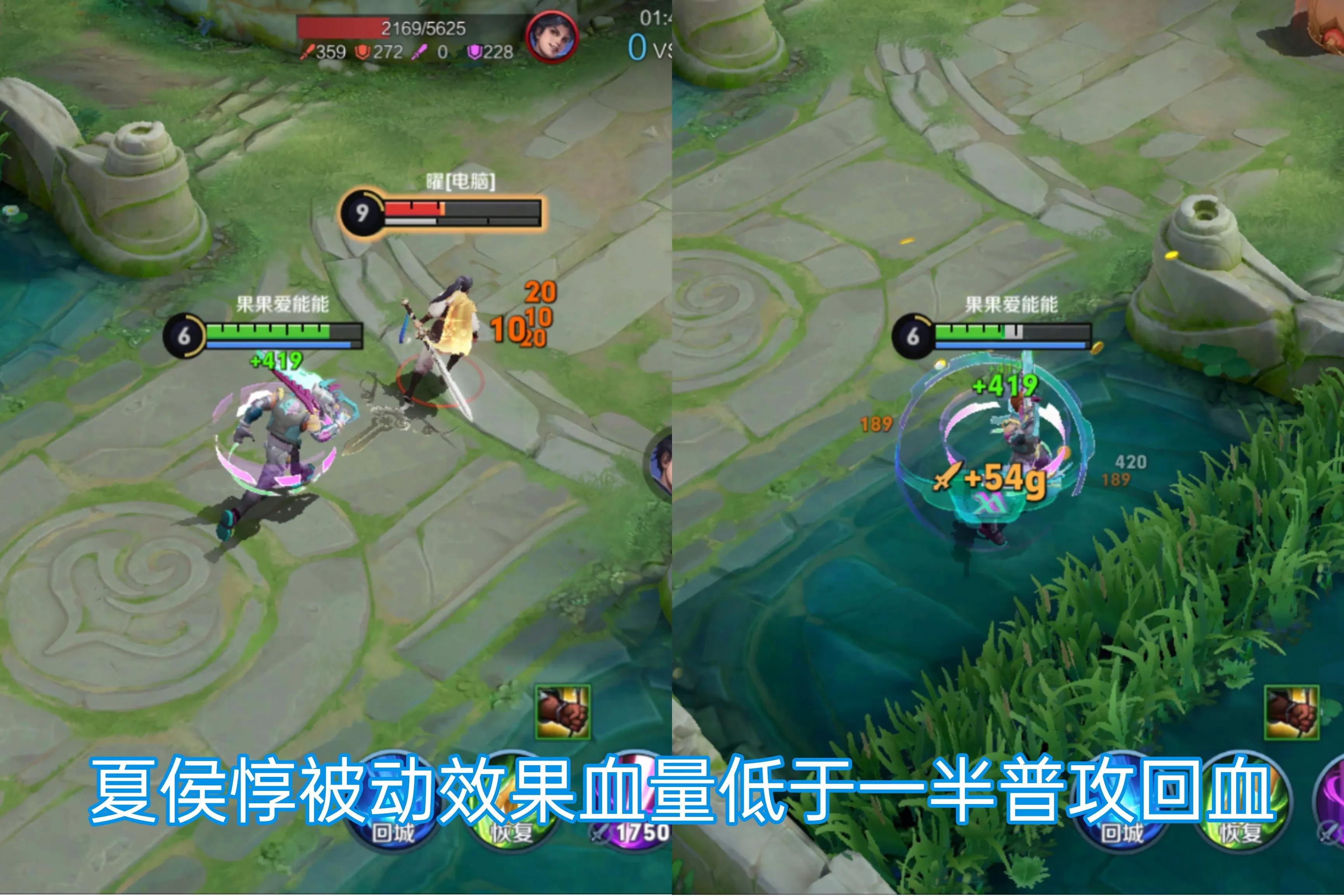 夏侯惇的被动效果具有高回复能力,当自身血量低于生命值的百分之五十之后,自身就会获得普攻强化效果,期间每次普攻都会回复自身百分之五的最高生命值,该被动冷却时间拥有三十秒。这里考虑到夏侯惇需要普攻来回血,故而才采用肉打野刀或者黄刀,这两件装备普攻都会造成额外伤害,后期玩家们还可以将抵抗鞋换成其他装备,可以根据实际情况选择,红莲斗篷或者反甲都是个比较不错的选择。夏侯惇的一技能具有两段,第二段可以将敌方英雄击飞。