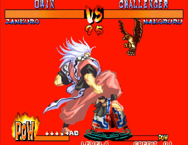 《侍魂》后期的作品中是可以直接选用斩红郎的,但是在前期却不行,需要借用秘籍。