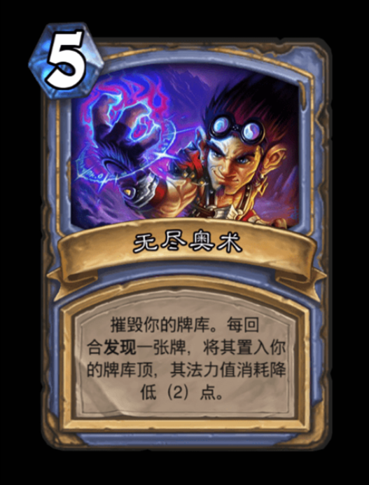 在宝藏选择方面,初始宝藏卡牌中散布蒺藜和沙漠伏兵都非常优秀,第一个可以克制快攻卡组的同时保证法力浮龙稳定站场,第二个技能则直接可以让哀绿、火妖等卡牌拍出时稳定站场,都是非常优秀的宝藏卡牌;全新推出的宝藏"无尽奥术"直接无视卡组疲劳机制,发现的卡牌中甚至可以找到宝藏牌强化场面强行扳回节奏,只要不是遇到武器快攻职业基本5费后法师的胜率能达到恐怖的80%。