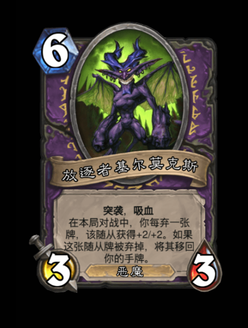 这套卡组的强势期其实是拿到了新版本的宝藏"放逐者吉尔莫克斯"后直接产生质变,前期通过骨网之卵、玛克扎尔的小鬼以及镀银魔像等常规弃牌套路抢占节奏,大量低费随从搭配灵魂残片等技能配合中期加丁让场面也不属其他节奏卡组,最后再拍上宝藏卡奠定胜局,整套卡组思路较为清晰。宝藏选择则注重前期节奏,优先选择增费宝藏如晶化宝石、铺场宝藏啃食等速攻宝藏,技能当然是选择"黑暗的艺术"啦。