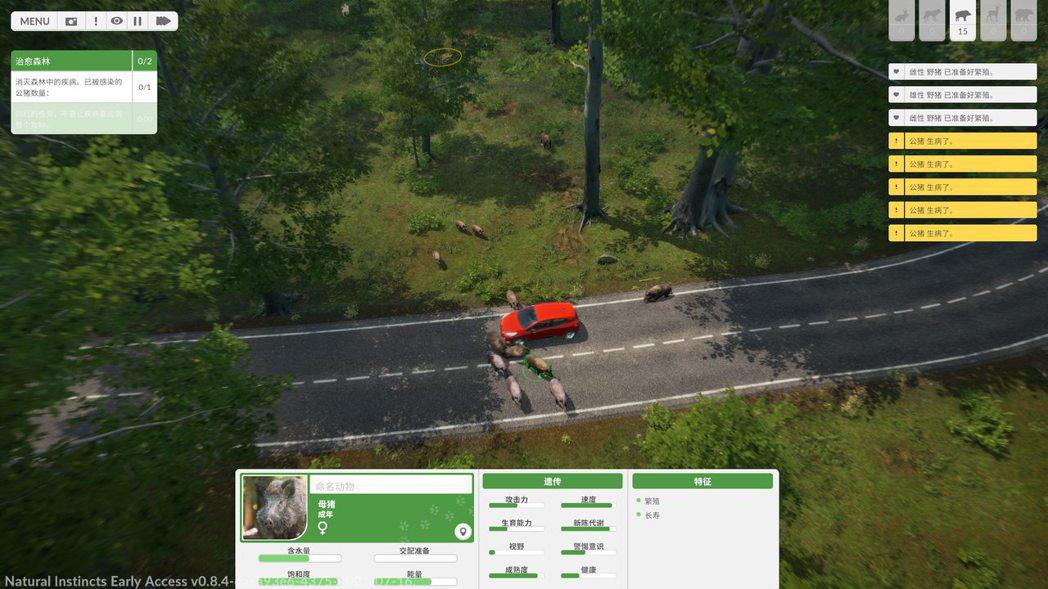 游戏里动物的AI非常愚笨,几乎不会主动进食、饮水与休息,玩家得频繁的操作每一只动物去做这些事情,若有偷猎者、垃圾堆或污染水源出现时,还要频繁的控制动物避开这些区域。但游戏没有给予玩家合适的操作方式,不论是动物的点选、动物情况的分辨都很麻烦。