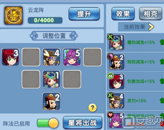术 士:多数使用云龙阵让法术伤害爆表,雁行阵灵巧加成先声夺人。