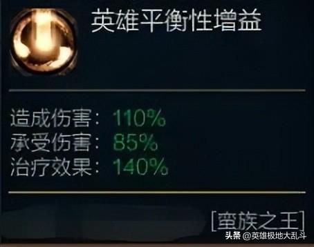 蛮王大乱斗有“输出伤害 +10%、承受伤害 -15%、 治疗效果 +40%”的buff。
