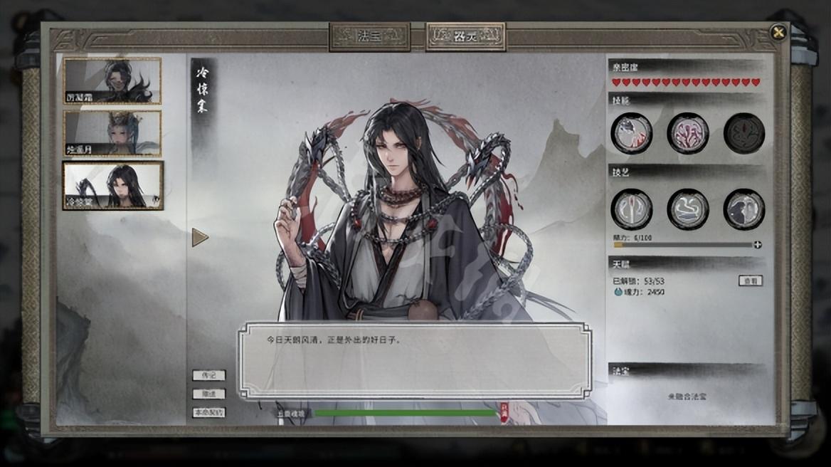 三灵共生 释放绝技和神通时,25%几率额外释放2次,伤害为原来技能伤害的30% ,位移类技能无效。
