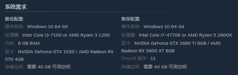 IT之家查询 Steam 页面获悉,该游戏支持简体中文,配置要求显示,最低配置为 GTX 1050 显卡,推荐配置为 GTX 1660 Ti 显卡。
