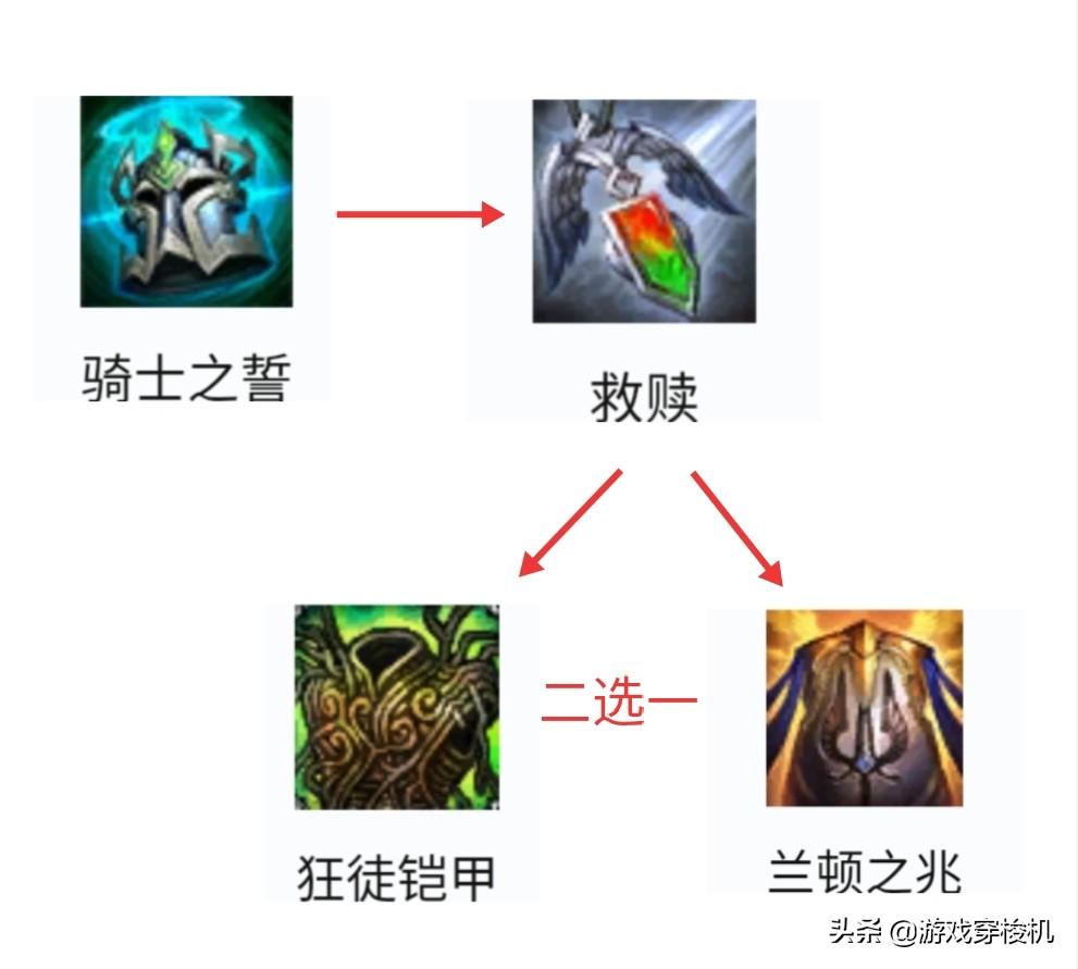 接下来就把骑士之誓合成,增加坦度的同时能分担一下拍档的承受伤害。救赎在后期的作用还是挺大的,可以打伤害、集体治疗和视野,简直就是把辅助最暖心的一面表现出来,救赎是一个不错的选择。最后一件装备的选择,我认为有两件比较适合的,那就是狂徒和兰顿,如果对方AP伤害比较多,就出狂徒,加大续航能力,对方AD伤害比较多就出兰顿,减少AD的暴击伤害并减速,加大自己的存活率,持续对敌方进行控制。