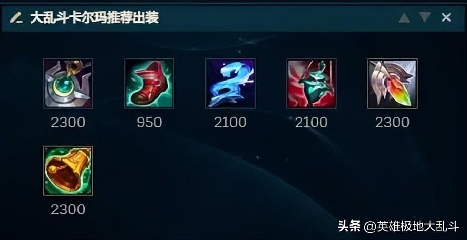 出装解析:这些都是能提升治疗和护盾效果的辅助装,配合大乱斗buff能有效提升卡尔玛RE护盾值。