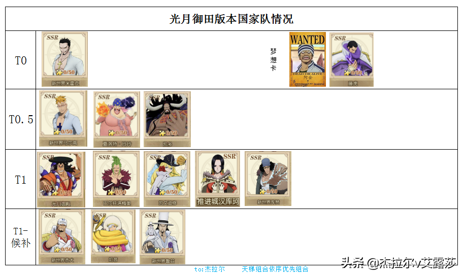 国家队常见队伍2:凯多 鹰眼 光月御田 卡文迪许 藤虎/新世界马尔高
