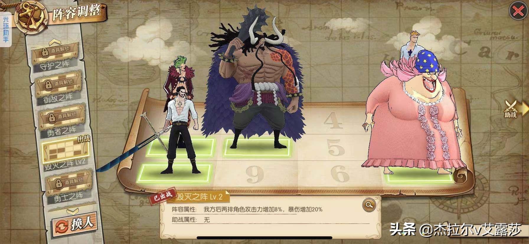那么先分析一下我们在天梯中常遇到的人物:大妈 藤虎 巴托 凯多 新世界鹰眼 新世界马尔高 卡文迪许 光月御田 青雉 推进城女帝