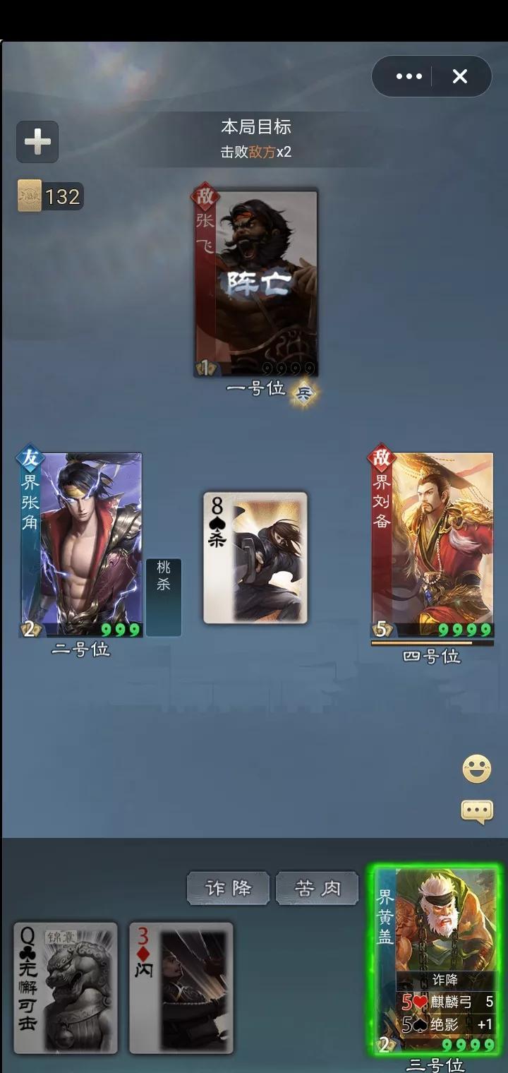 例如下面这局,队友二号位张角,我三号位界黄盖。