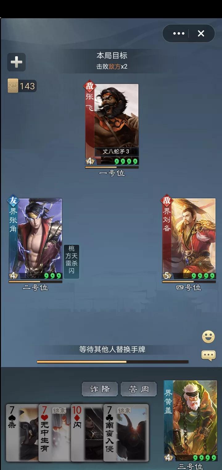 剩下一个刘备,相当于白板,发动技能只会加快阵亡速度。