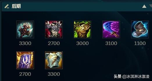 智慧末刃在需要魔抗的时候补出,由于他能够增加大量攻速,如果出了智慧末刃,就可以把攻速鞋卖掉换成魔抗鞋。其他装备都是常规的肉装,在不用着急补抗性的情况下,狂徒铠甲是很好的选择,毕竟风墙和E技能的存在,能够帮你规避很多的aoe伤害以及远程弹道攻击。