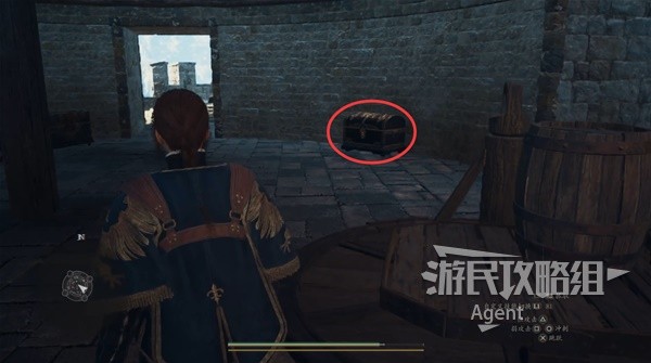 从二楼下图位置可登上瞭望塔。楼梯断了的地方用冲刺跳过去,即可来到瞭望塔的塔顶,开宝箱得到“指引龙眼”,可在地图上标出龙之脉动碎片的位置,可无限次数使用。
