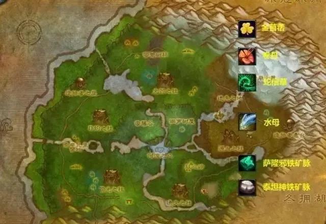 索拉查盆地的资源颇为丰厚,矿产主要为萨隆邪铁矿脉、泰坦神铁矿脉;草药主要有蛇信草、金苜蓿和卷丹;渔点主要为水母群,任意渔点都有几率钓出海龟坐骑。