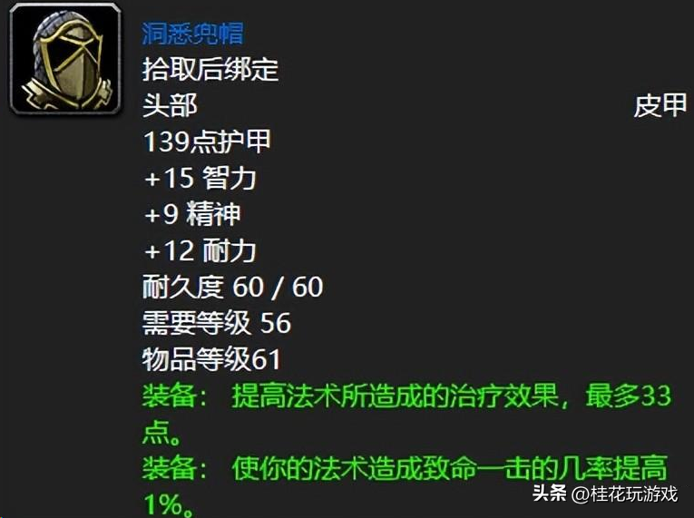 奶德又来了!观察者克鲁什的洞悉兜帽是奶德们必不可少的头盔,33点治疗效果点击送!就算是怒风也不会拒绝的存在,奶德小号们记得要刷哦!
