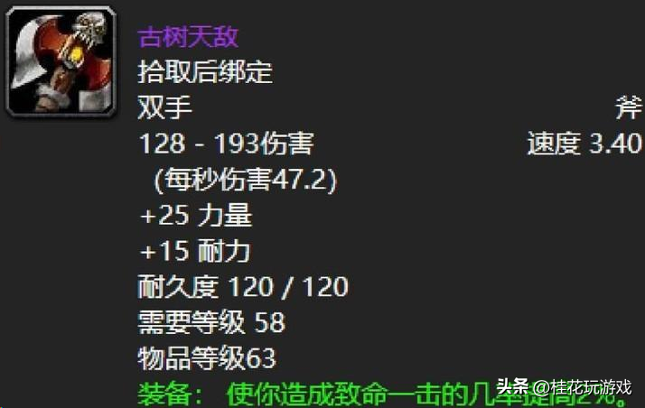 最后压轴的是这把造型奇特的“古树天敌”,它是厄运古树最害怕的存在,但同样也是猎人们最想要的东西!无论是兽人猎人还是别的职业用过渡,这把武器在初期都是很给力的。