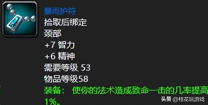 这是水元素BOSS海多斯博恩的护符,爆发系职业的调教良品。没错你没看错,火法术士看到这个也要流口水的,因为也就缺少了治疗和法伤而已,其他属性真的够用,普通法师可以单刷本拿。入手容易用起来更容易!