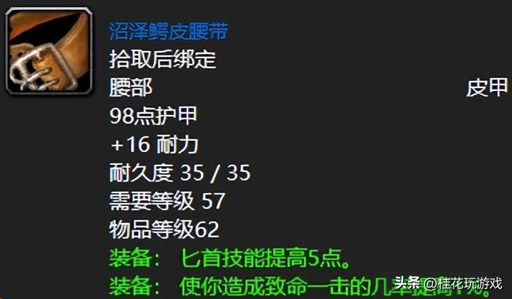 所有匕首贼,只要一开刺蹄的副本,就必须肝到这条腰带。5点匕首技能和1%爆击,实在过于暴力了!懂的都懂!