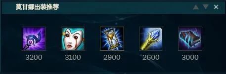 出装解析:卢登增加蓝量和冷却缩减,属于必出的装备。大面具是莫甘娜输出的核心装备,大面具不仅提供法强也提供血量,出了后只要Q中敌人接W至少消耗一半以上血量。中亚不用多作解释,莫甘娜进场开大不被秒靠的就是中亚保命。冰杖和鬼书都是偏向功能性的装备,给敌人增加减益效果。如果对面回血能力不高,鬼书可以换帽子。