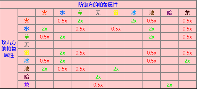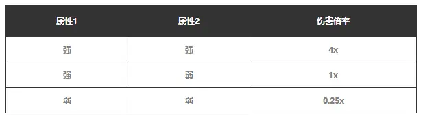 说明:未标记的为1倍(常规伤害),效果好的为2倍,效果不好的为0.5倍