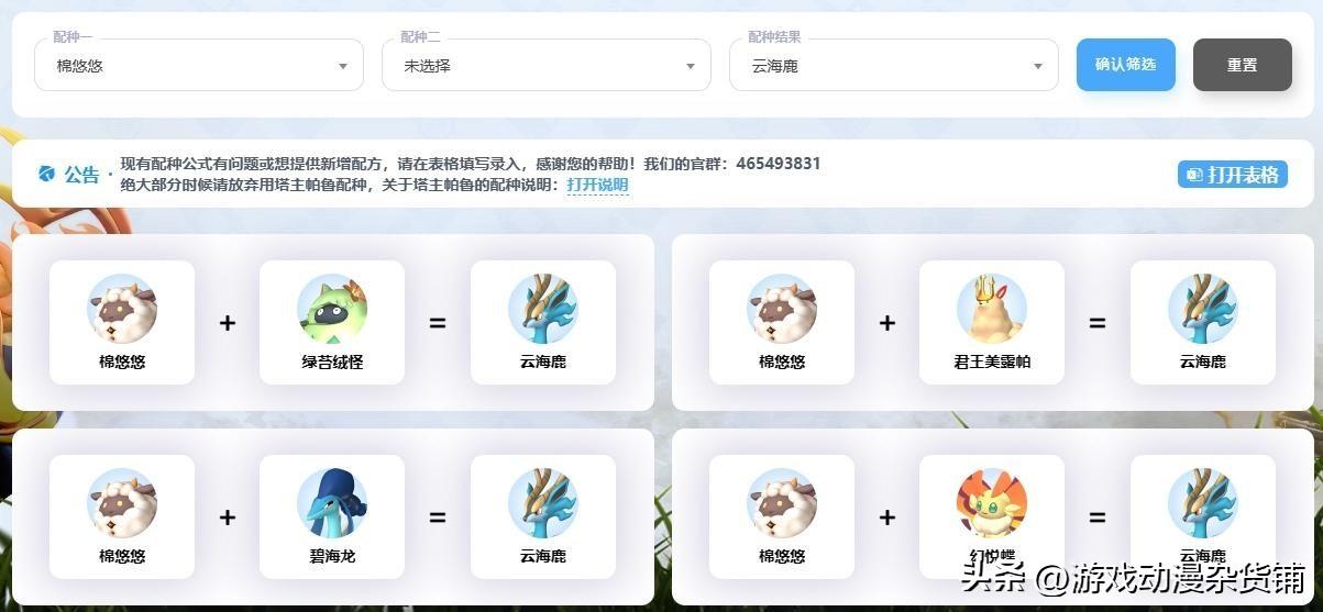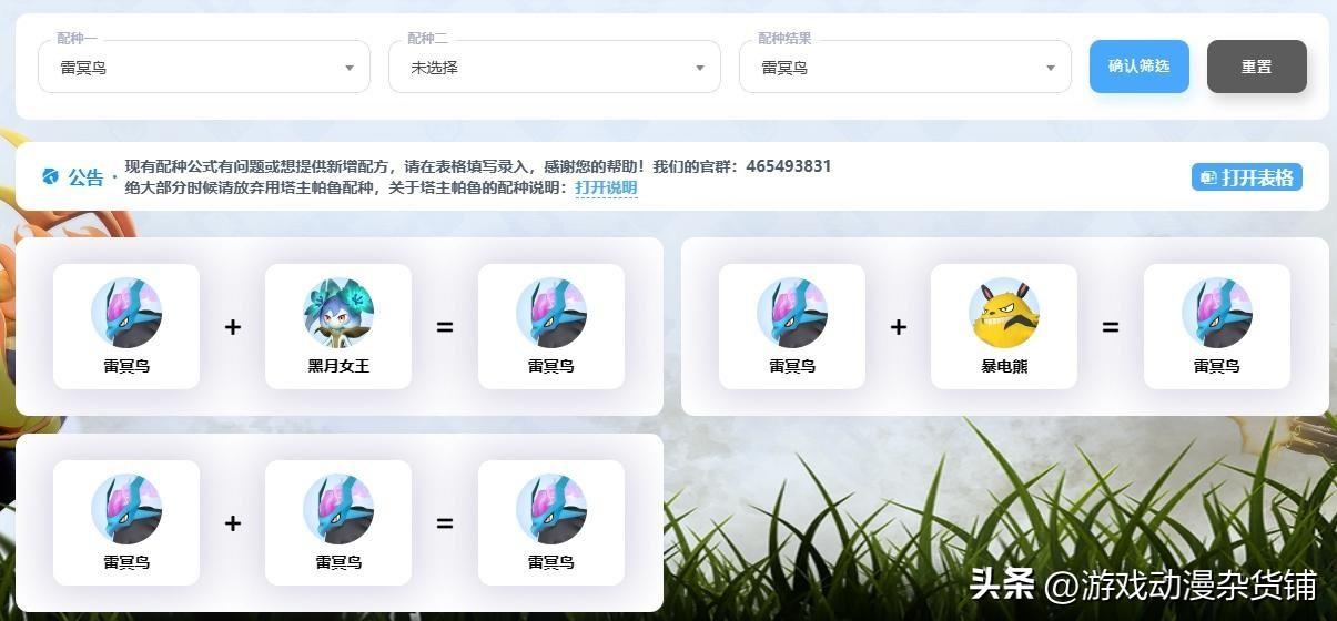 限定配方:有一些帕鲁无法套用到上面的配种值公式,他们有自己固定的配方,他们会只有A+A=A跟限定配方的A+B=C,只有两种方式可以配种出来。