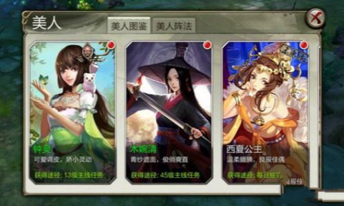 50级以前我们只有偃月阵、鱼鳞阵、衡轭阵,三个阵法,最多只能上阵三个美女;前期我们要快速升级,并且难度副本和游戏难度都不大,所以选择攻击型的鱼鳞阵(增加暴击),可以选择钟灵、木婉清、西夏公主这三个美人,如果脸不好没抽到西夏公主,就只能等50级获得马夫人或者VIP奖励了。